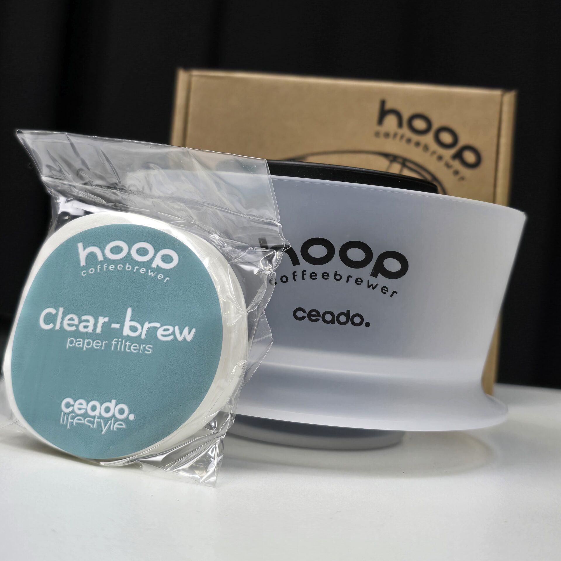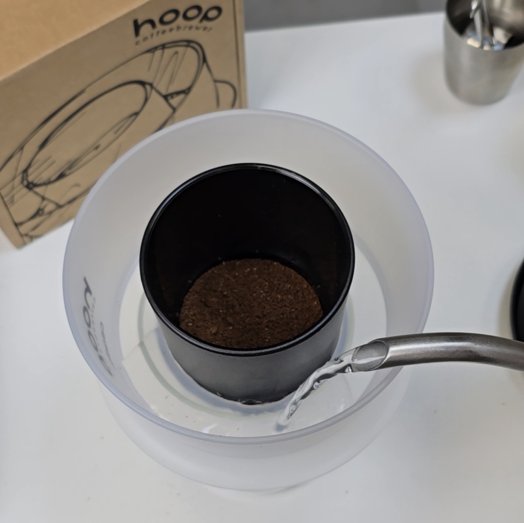 Pune filtrul de hârtie, umezește-l, adaugă cafeaua și toarnă apa. Hoop se ocupă de restul!